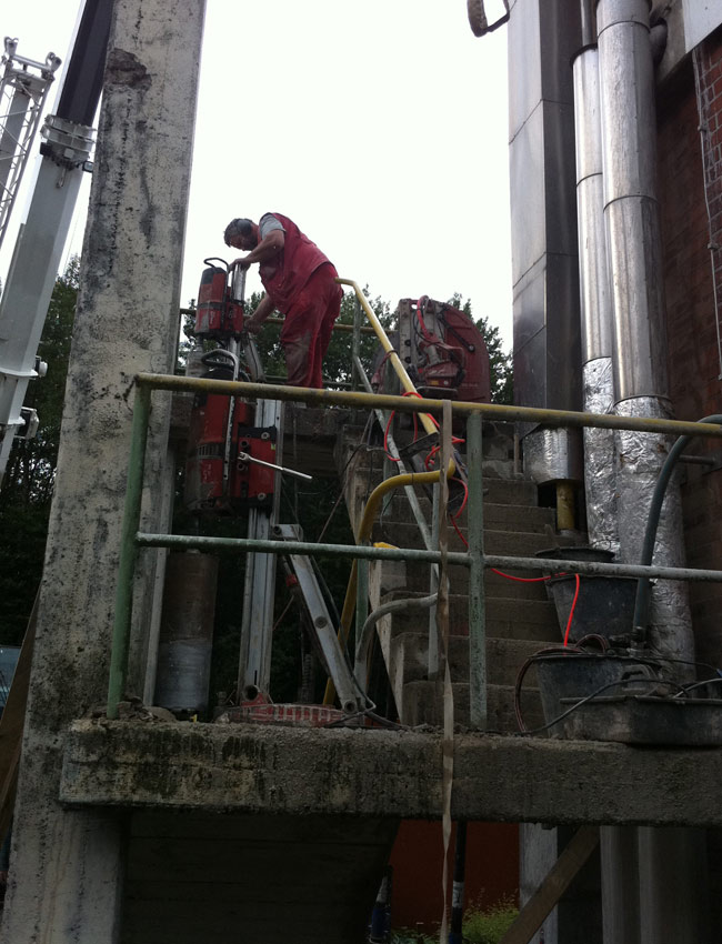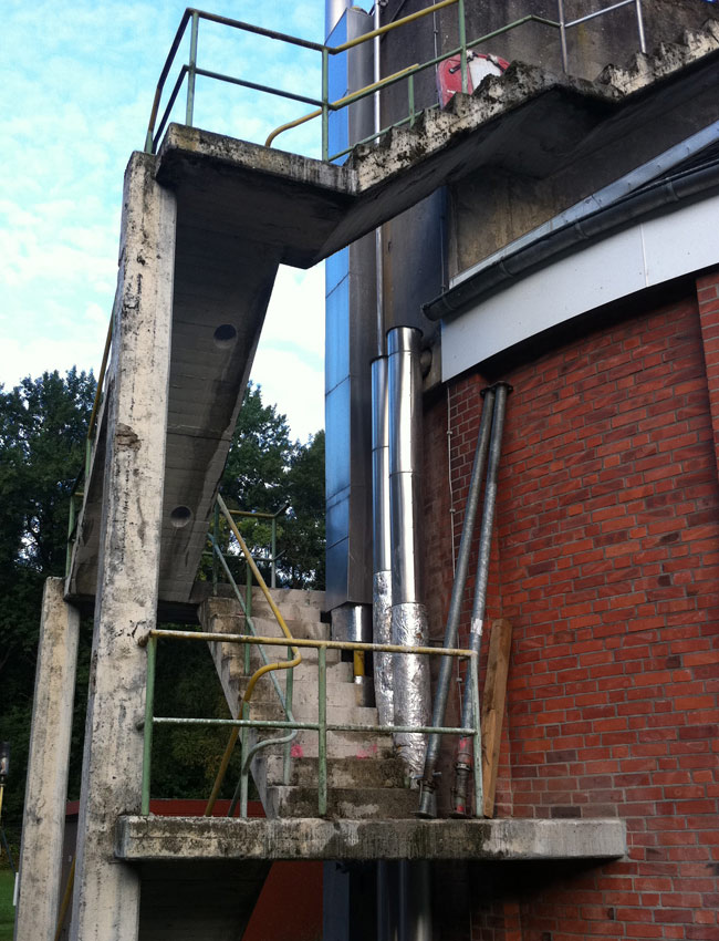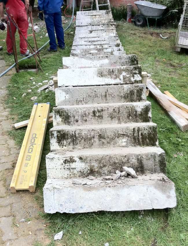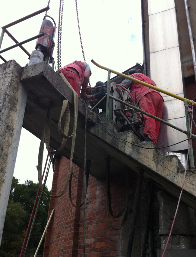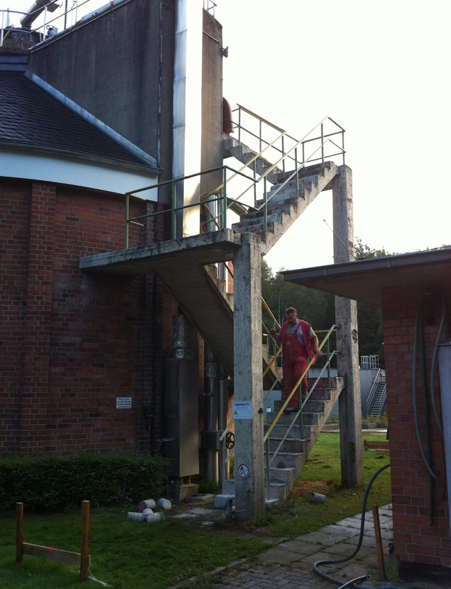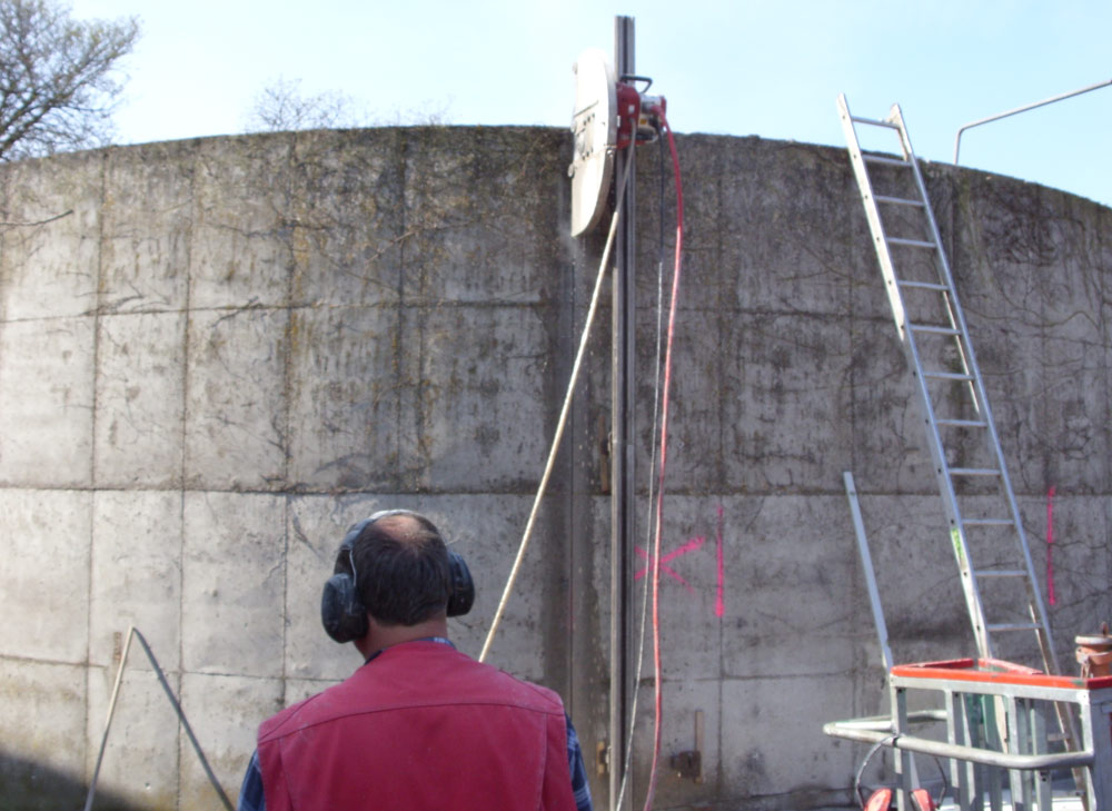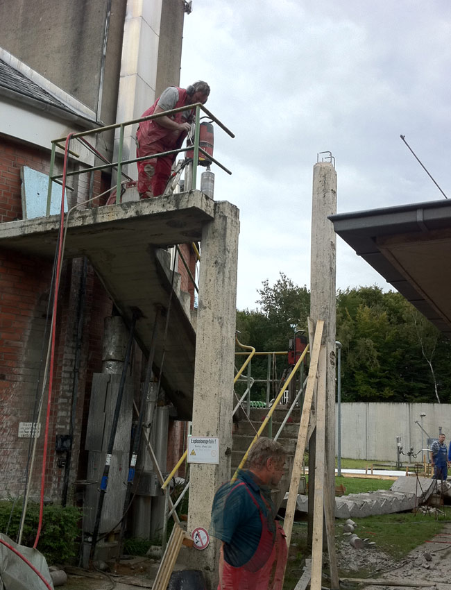In der Kläranlage Schwarzenbek musste eine marode Betontreppe abgebrochen werden. Durch Trennschnitte entlang des Faulturmes und Teilungsschnitte zur Zerkleinerung und Reduzierung des Gewichts der einzelnen Betonteile haben wir mit Hilfe eines Mobilkrans Die Treppenanlage demontiert.
